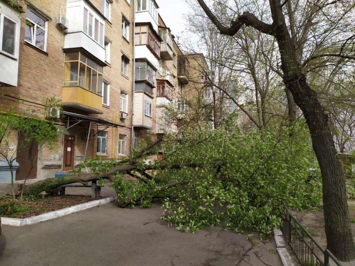 Непогода в Киеве, которая обрушилась на столицу днем 16 апреля, натворила немало бед. В некоторых районах города сильный ветер повалил деревья и даже линии электропередач.