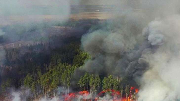 "Они очень сильно разгорелись, дым видно даже с ЧАЭС. То есть когда смотришь на нее, с одной стороны - торфяники, а с другой - Буряковка. Это село, рядом с которым есть одноименный пункт захоронения радиоактивных отходов", - сказал Емельяненко.