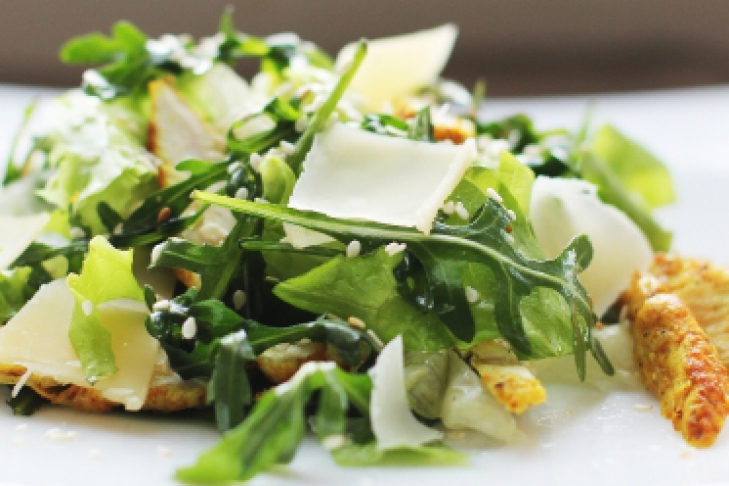 Например, можно приготовить салат с твердым выдержанным сыром и курицей. Для его приготовления понадобится салатный микс - 50 г; куриное филе - 50 г; твердый выдержанный сыр - 20 г; карри - щепотка; соль, перец - по вкусу; чеснок - 1/2 зубчика; кунжут - 1/2 ч. л., оливковое масло - 3 ст.л.; лимонный сок - 1 ст.л. А готовить этот кулинарный шедевр очень просто: куриное филе нарезаем полосками, солим, перчим, приправляем чесноком и карри. Обжариваем до готовности и даем остыть. Салатный микс сбрызгиваем оливковым маслом, лимонным соком и выкладываем на тарелку. Сверху кладем куриное филе, твердый выдержанный сыр, посыпаем кунжутом и подам к столу.