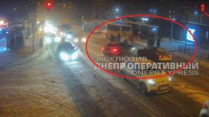 В Днепре автомобиль сбил людей на переходе (видео)