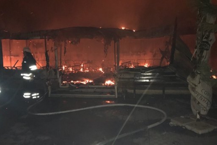 "Прибыв на место пожара огнеборцы установили, что горит главное сооружение кафе, беседка, склад и хозяйственное помещение. Погибших и травмированных нет. Пожар ликвидирован в 02:40 на площади 150 м2. К пожарно-спасательным работам привлечены 14 человек личного состава и пять единиц техники", – рассказали спасатели.