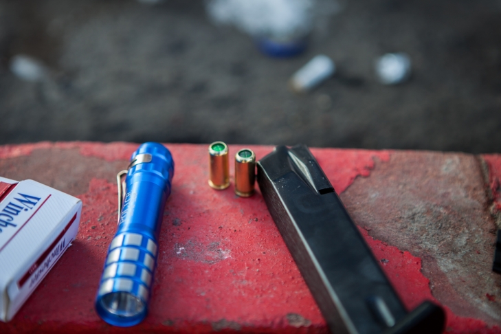 В результате в ходе поверхностного осмотра у задержанного был обнаружен пистолет с патронами. По словам стрелка, патроны — холостые, и стрельбу он не открывал.
