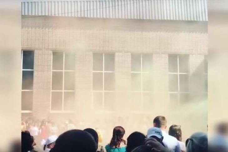 При этом торжество не остановилось, а под голос выступающих с крыльца детей школьники и их родители начали снимать происходящее на видео. Некоторые зрители от едкого запаха стали расходиться, однако часть публики все же осталась.