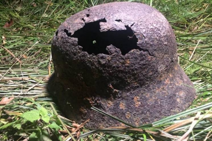В захоронении был найден немецкий стальной шлем времен Второй мировой войны.