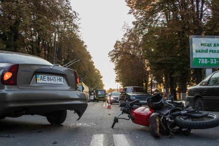 ДТП в Днепре: Daewoo "влетел" в мотоцикл, есть пострадавшие (видео)