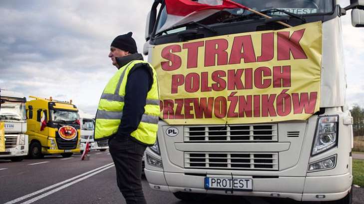 Митингующие не пропускали на территорию транспортные средства весом более 3,5 тонны, а на выезд из Польши пропускали по одному грузовику каждый час.