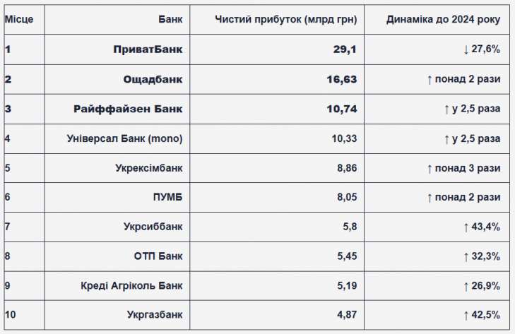 За підсумками 2025 року банківська система України продемонструвала високу динаміку зростання, хоча лідер ринку — ПриватБанк — зафіксував зниження показників. Згідно з даними НБУ, до трійки найприбутковіших установ увійшли два державні банки та один з іноземним капіталом.