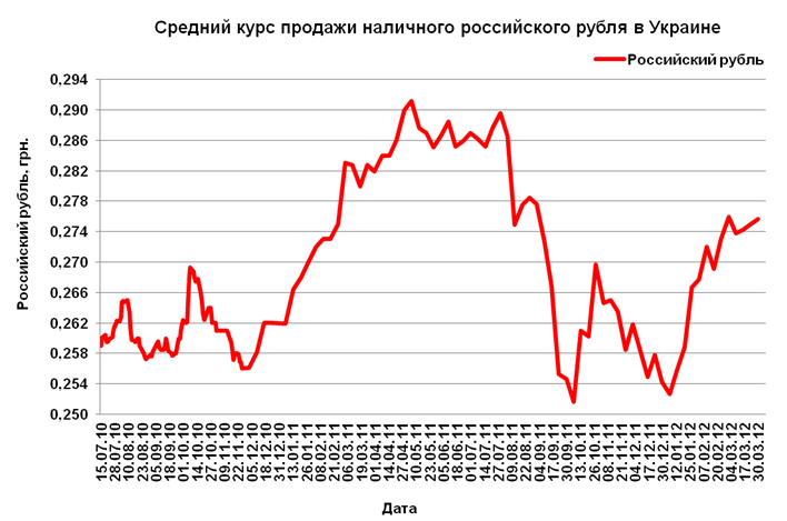 На динамику российской валюты на текущей неделе будет оказывать влияние ряд экономических новостей из США и еврозоны. В случае, если комментарии председателя ЕЦБ после решение по процентной ставке, а также окончательные данные по ВВП еврозоны за 4 квартал 2011 года окажутся негативными, российский рубль может снизиться в цене против доллара и гривны. Также негативно на стоимости рубля может отразиться публикация данных по занятости в США за март. Прогнозный диапазон колебания среднего курса продажи наличного рубля в Украине на текущей неделе – 0,274–0,279 грн.