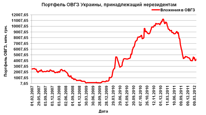 Вложения нерезидентов в украинские ОВГЗ за минувшую неделю повысились на 0,09% до 4,285 млрд, что свидетельствует об отсутствии изменения инвестиционной привлекательности Украины.