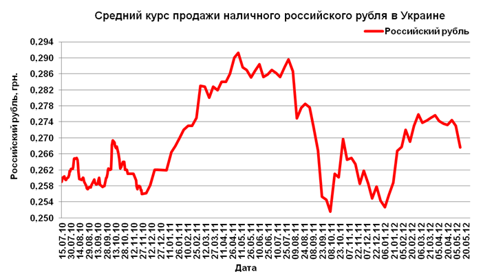 По оценкам аналитиков FOREX CLUB в Украине, ухудшившийся после выборов в еврозоне политический фон, а также ожидающиеся негативные данные по индексу деловой активности в Германии за май могут привести к дальнейшему снижению рубля. Несколько поддержать рубль могут комментарии председателя ФРС США Бена Бернанке после решения по процентной ставке 15 мая, в которых он может сделать намек на возможность третьего этапа количественного смягчения. Прогнозный диапазон колебания среднего курса продажи наличного рубля в Украине на текущей неделе – 0,26–0,271 грн.