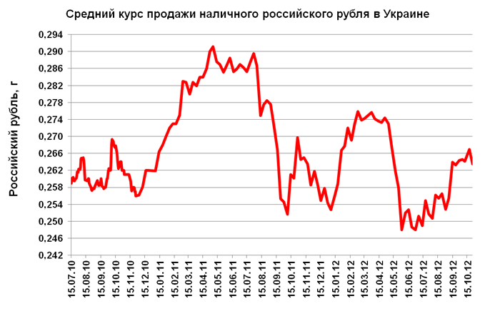 Курс продажи безналичного рубля в Украине за прошедшую неделю понизился на 2% до 0,259 грн., средний курс продажи наличного – на 1,27% до 0,264 грн. Основной причиной удешевления российской валюты в Украине стало укрепление доллара США на мировой арене и снижение стоимости нефти марки Brent. Об этом корреспонденту ИА «НАШ ПРОДУКТ» сообщили в FOREX CLUB в Украине.