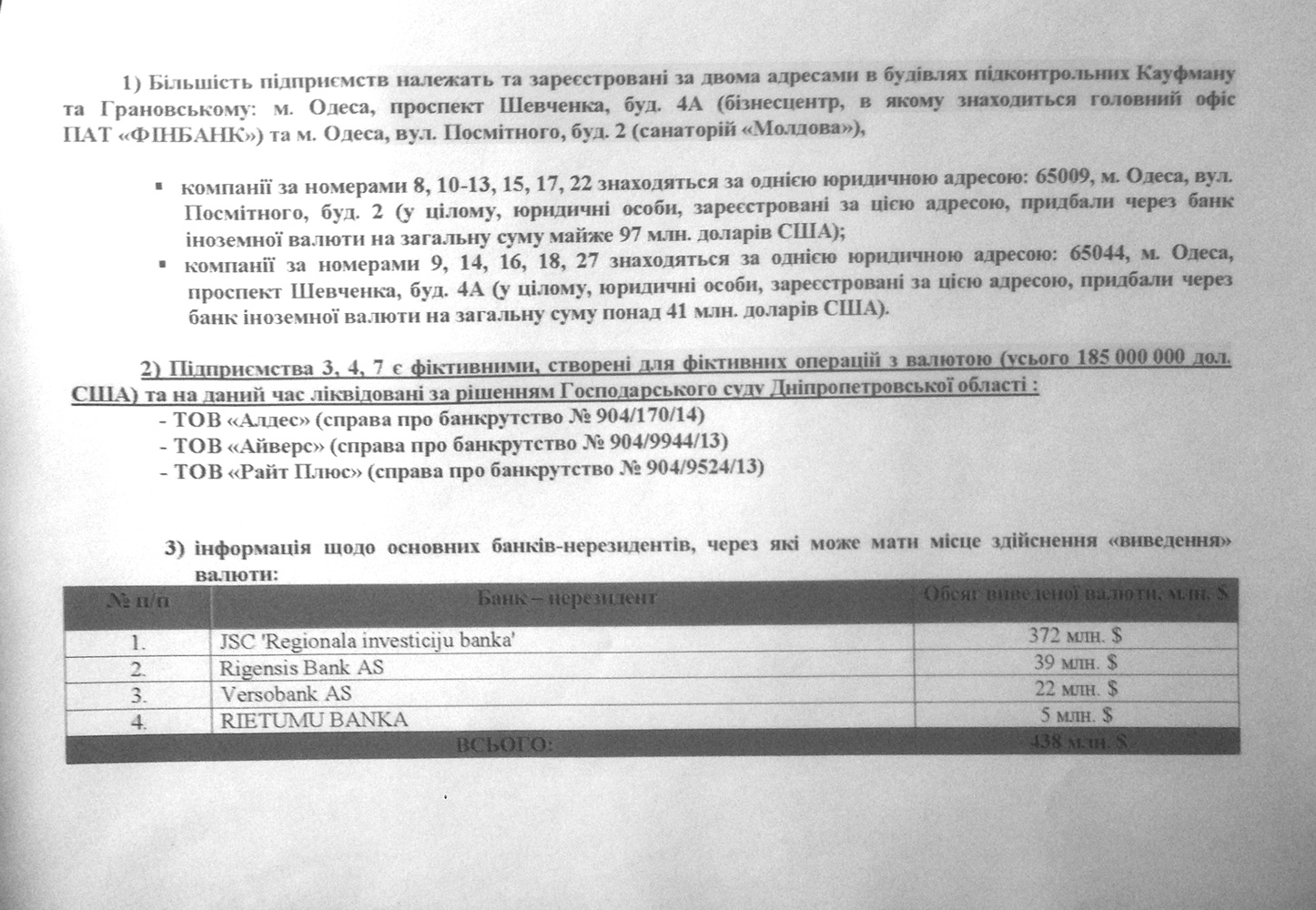 Источником выведенных за границу финансовых средств были государственные деньги, направленные на выполнение бюджетных программ. Компании, задействованные в данных операциях, в большинстве своем зарегистрированы по двум адресам в зданиях принадлежащих Борису Кауфману в городе Одессе – на проспекте Шевченко и ул. Посмитного.