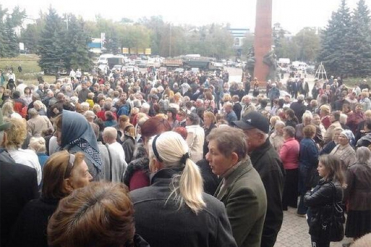 Утром 22 сентября в оккупированном российскими боевиками Антраците на площади возле горисполкома прошел митинг местных жителей с требованием наладить жизнь в городе.
