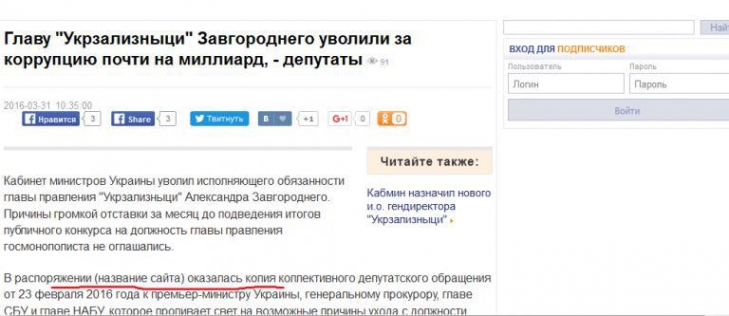 СМИ уличили в «джинсе» против экс-главы «Укрзализныци» (ФОТО)
