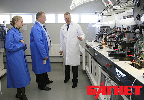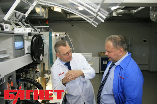 Генеральный директор предприятия «Знак» Игорь Попович рассказывает партнерам из ОАО «УкрКарт» о том, как на заводе организовано производство платежных карт с чипом