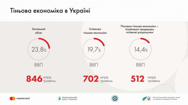 По результатам исследования украинской экономики, 846 млрд гривен или 23,8% от официального ВВП за 2018 год, находится в тени.