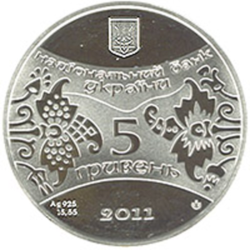 На аверсе монеты изображены: вверху – малый Государственный Герб Украины, под ним надпись «НАЦІОНАЛЬНИЙ БАНК/ УКРАЇНИ» в окружении растительного орнамента. Под надписью – номинал «5 ГРИВЕНЬ». Под номиналом – год выпуска монеты 2011, тип металла и обозначение его пробы - Ag 925, массы – 15, 55 и логотип Монетного двора НБУ.