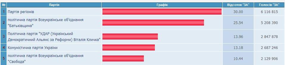 за партию «Наша Украина» - 1,11%, за Радикальную партию Олега Ляшко – проголосовало 1,08% избирателей.