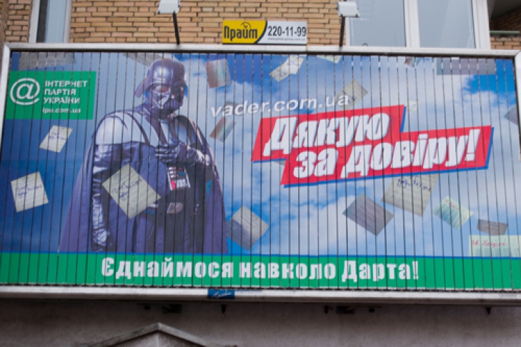 Дарт Вейдер выразил с билборда сердечную благодарность украинцам, которые проголосовали за реформы, и оказали высокое доверие Темному Лорду на выборах в Верховную Раду Украины.