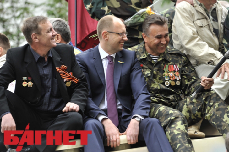 В День победы Яценюк взобрался броневик, а Тигипко пришлось идти пешком (ФОТО)