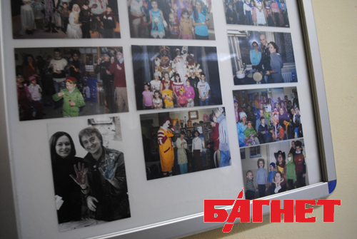 «Сюда приезжают под праздники часто, звезды бывают. Вот Даша Малахова блинчики пекла с ребятами, а это семья Безруковых приезжала, «95-й квартал», - рассказывает Женя, показывая плакат с фотографиями на стене в коридоре. Рядом висят рисунки, аппликации. «Это из макарон делали», - смеется она. – Идем, я тебе зайца нашего безумного покажу, его художница нам рисовала!».