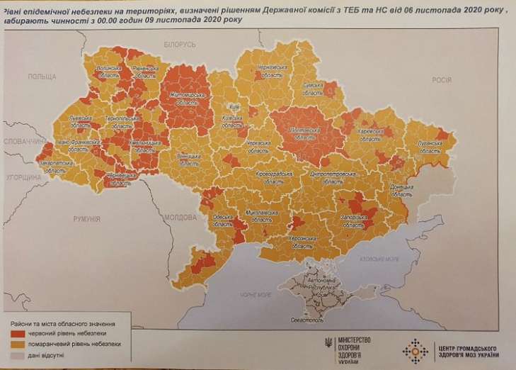 К оранжевой зоне отнесли остальные административно-территориальные единицы Украины.