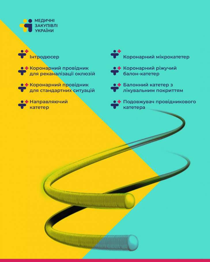 Як повідомлялося, уряд розширив перелік медичних товарів, що закуповуються централізовано за кошти держбюджету, новим піднапрямом. Він складається з 14 позицій медичних виробів, закупівля яких відбуватиметься в межах Програми медичних гарантій від НСЗУ, що дозволить пацієнтам отримувати оперативне лікування хронічних коронарних синдромів безоплатно.