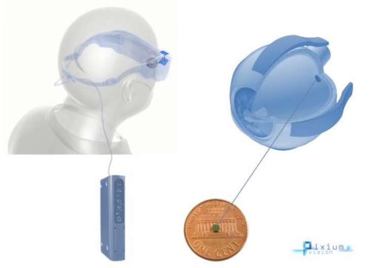 Пристрій є комбінацією спеціальних окулярів з камерою, що фіксують зображення, яке передається на бездротовий очний імплантат розміром 2×2 мм. Він, у свою чергу, перетворює картинку на електричні імпульси та відправляє їх у мозок.