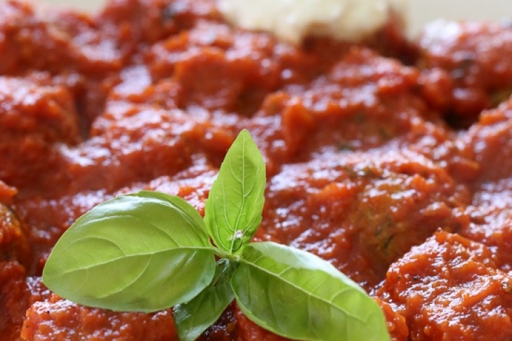 В глубокой сковороде нагреваем соус. Добавляем фрикадельки и тушим еще 5 минут.