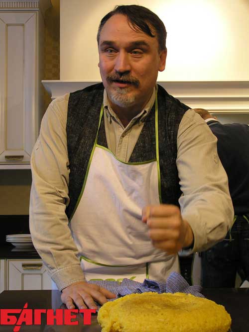 Во время V Весеннего книжного ярмарка писатели Виталий и Дмитрий Капрановы провели мастер-класс по приготовлению мамалыги