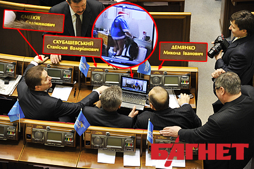 Впрочем, получить полное удовольствие им помешал назойливый и любопытный фотограф Андрей Мосиенко, который частенько снимает мероприятия Партии регионов. После того, как Андрей подошел к импровизированному «кинозалу» и вероятно захотел приобщиться к голливудскому киноискусству, народные избранники занялись цензурой и прикрыли «лавочку». А может Андрей за билет на заплатил?Как бы там ни было, на самом деле журналисты «Багнета» не считают, что депутаты-регионалы совершили что-то ужасное. Ничто человеческое им не чуждо. Смотрят фильмы в Интернете – на здоровье! Вот только непонятно, почему бы им не остановить председателя Нацкомиссии по вопросам общественной морали господина Костицкого, который фактически намеревается ввести цензуру в Интернете.