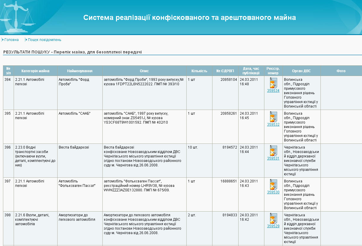 Нет, ну понятно, министру тоже надо на чем-то ездить. Куда ему в метро – порвут на части не очень сознательные украинцы. Но ведь он мог взять себе машину и поскромнее. В этом может убедиться каждый, если зайдет на специализированный сайт «Система реализации конфискованного и арестованного имущества» (www.trade.informjust.ua). Согласно данным сайта, в период, когда «Мерседес Лавриновича» закрепляли за Минюстом (условно с 15 марта по 13 апреля 2011 г.) выбор автомобилей был огромен. Для служебных поездок министра можно было получить не такие дорогие, но в то же время престижные авто. Например, SAAB 900 1997 г. за $8,8 тыс. (см. ниже скан с сайта «Система реализации конфискованного и арестованного имущества»).