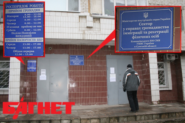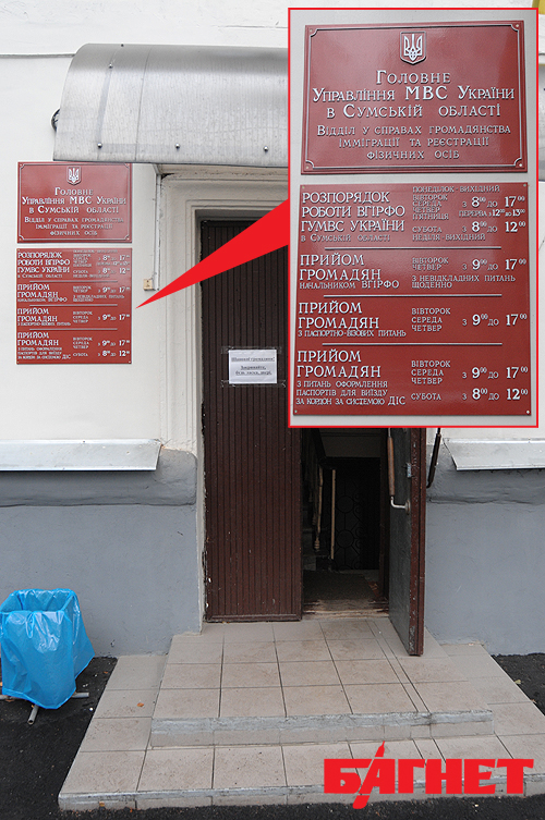 Как выяснилось, Сумы ничем не отличаются от остальных регионов. Другое дело, что здесь, как и в Чернигове, фирмы-присоски обосновались непосредственно в офисах паспортных подразделений (ГИРФЛ или бывшие ОВИРы).