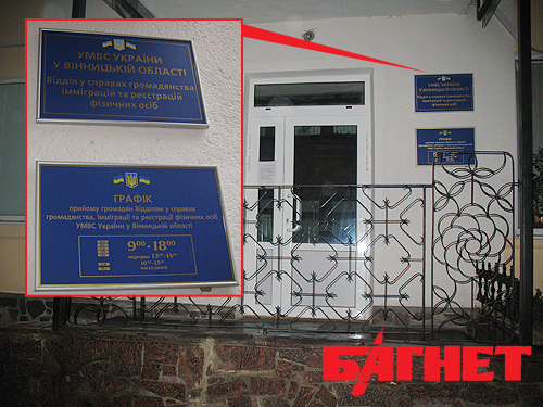 Согласно данным Госкомстата, винницкий филиал ГП «Документ» находится по адресу ул. Театральная, 12 (там находится УМВД в Винницкой области). Это в аккурат возле Винницкого областного отдела ГИРФЛ (устаревшее название ОВИР), который расположен по ул. Театральная, 10, куда мы в первую очередь и направились (см. ниже фото).