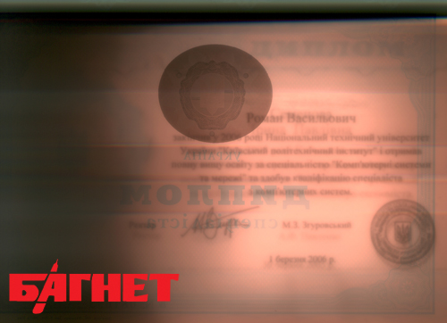 Как сообщил Олег Руденко, три диплома журналистам все-таки удалось купить. Подделки были отданы на экспертизу одному из полиграфических предприятий Украины, которое сравнило купленные «корочки» с образцами настоящих дипломов аналогичного года.