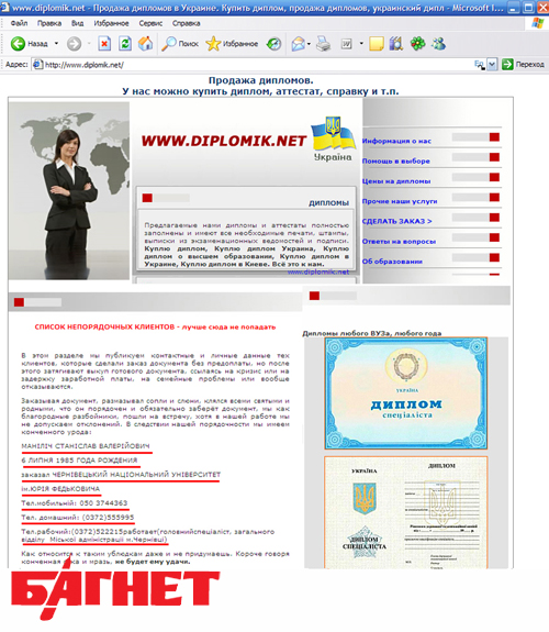 Кстати, если в последнюю минуту клиент передумывает покупать диплом, то его данные вывешиваются на специально разработанном отделе сайта с черным списком недобросовестных клиентов, чтобы неповадно было кидать «благородных разбойников» в следующий раз.