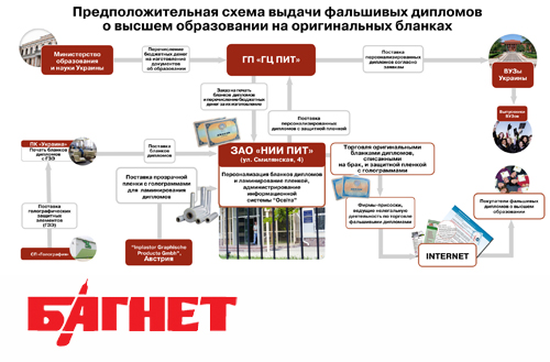 Вкратце о схеме. Бланки дипломов печатает госпредприятие «ПК «Украина», которое наклеивает защитные голограммы, поставляемые СП «Голография». Далее бланк, являющийся бланком строгой отчетности, ПК «Украина» поставляет на ЗАО «Научно-исследовательский институт прикладных информационных технологий» («НИИ ПИТ»), в котором учредителями выступают пять физлиц. А далее с бланками дипломов начинается настоящая вакханалия.