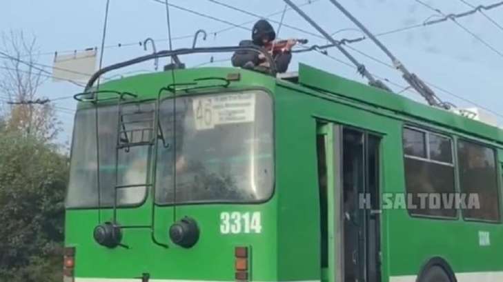 В Харькове скрипач устроил концерт на крыше троллейбуса (видео)