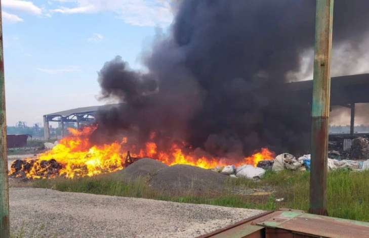 Из-за обстрела произошло возгорание травы, информирует ГСЧС, а также строительного мусора и вторичного сырья на площади около 800 кв м.