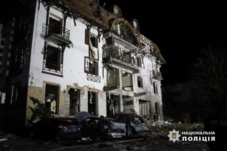 Національна поліція України опублікувала фото та відео наслідків влучання в "Парк Готель" в Харкові.