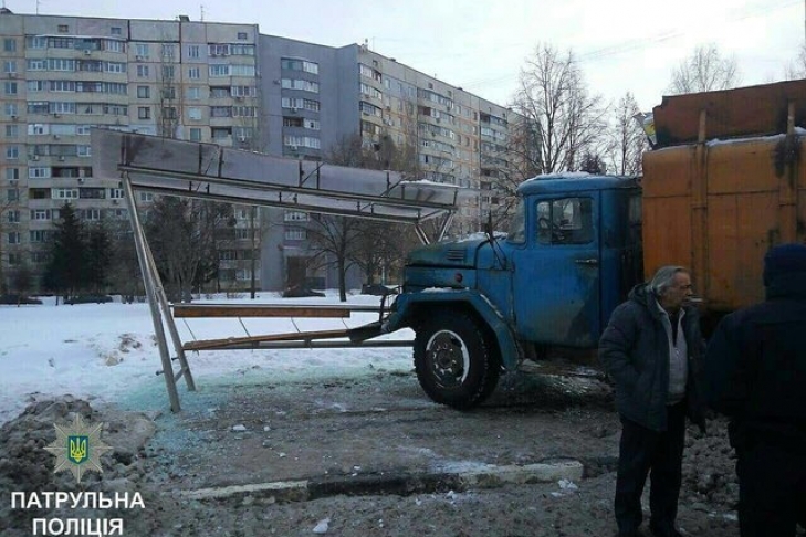 Сегодня, 7 февраля, около 8:30 в Харькове, на проспекте Людвига Свободы, 35, мусоровоз ЗИЛ въехал в остановку общественного транспорта.