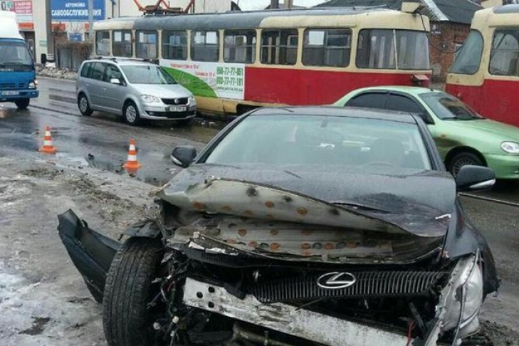Богатые тоже бьются: в Харькове дорогая иномарка въехала в трамвай