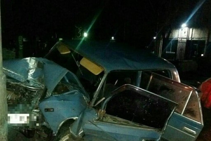Автомобиль "ВАЗ 2106" выбросило на обочину, после чего он врезался в опору электропередач. Машина сильно повреждена, а водитель травмирован.