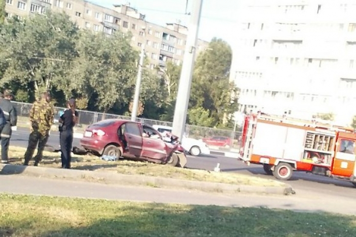 Автомобиль Daewoo Lanos врезался в столб на пр.Гагарина в Харькове. По словам очевидцев, авария произошла сегодня, 20 июля, около 7 утра недалеко от пересечения проспекта с улицей Державинской, на полосе движения в сторону центра города.