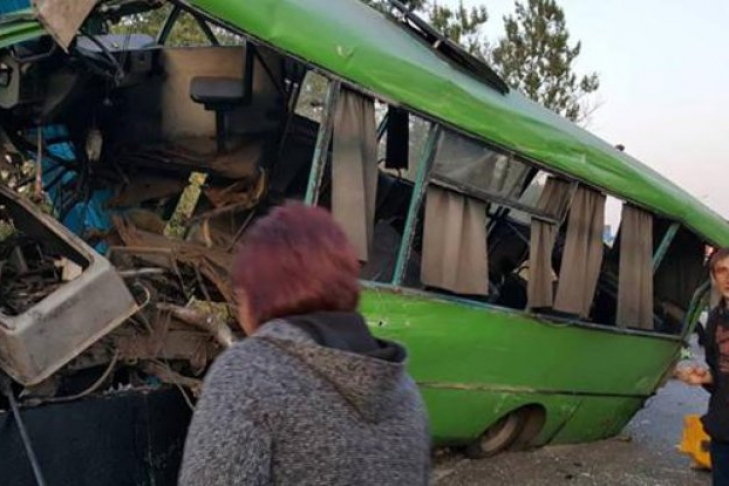 Свидетели произошедшего рассказали, что при въезде на мост грузовик пытался объехать маршрутку, автобус "повело" и он врезался в опору моста через Северский Донец.