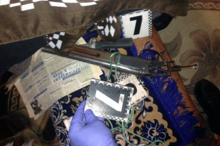 Работники следственно-оперативной группы обнаружили по указанному адресу потерпевших и связанного вора. Он был в перчатках, рядом лежала маска и обрез охотничьего ружья.
