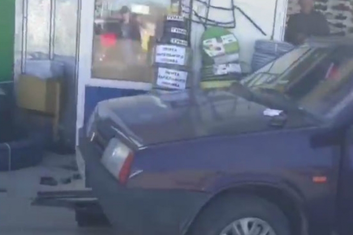 В Харькове возле ТЦ "Барабашово" автомобиль ВАЗ врезался в витрину магазина.
