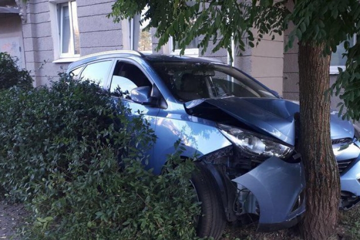 Женщина за рулем выехала на тротуар и "влетела" в дерево
