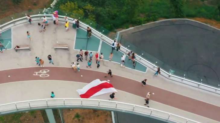 Во вторник, 11 августа, в Киеве продолжаются акции в поддержку белорусов. В соседней страны уже вторые сутки продолжаются протесты, которые возникли на почве выборов президента. Так, над киевским пешеходным мостом запустили дрон с национальным белорусским бело-красно-белым флагом. Об этом сообщается на странице Dronarium Украина в Facebook.