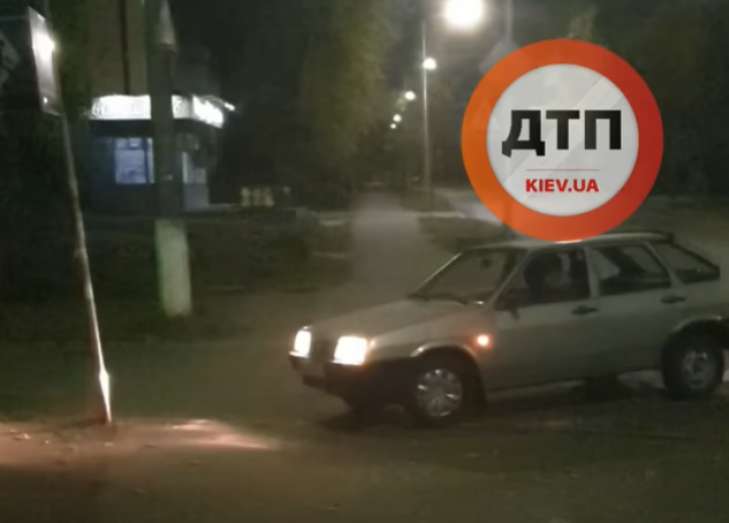 В Соломенском районе Киева на улице Ушинского ночью произошел необычный дорожный инцидент.